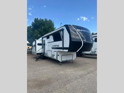 Enjoy full time living, an affordable price, and a wide body construction for more living space with every one of these KZ Durango light high-profile fifth wheels! These luxury units can be used all year round with the all-weather insulation package, the 3" x 14" foam-core in-floor straight-line heating system with a 35,000 BTU furnace, and the 15,000 BTU ducted roof A/C which optimizes the airflow by an average of 40% for better performance, cooling time, and reduction of noise. A few other construction features you will appreciate include a one piece, seamless walk-on Tufflex roofing material, Pex® in-floor heated waterlines, and a Lamilux® gelcoat fiberglass exterior. Inside, blancher maple & morel fog cabinetry , a king size bed, and smart TVs will have you feeling like you never left home!