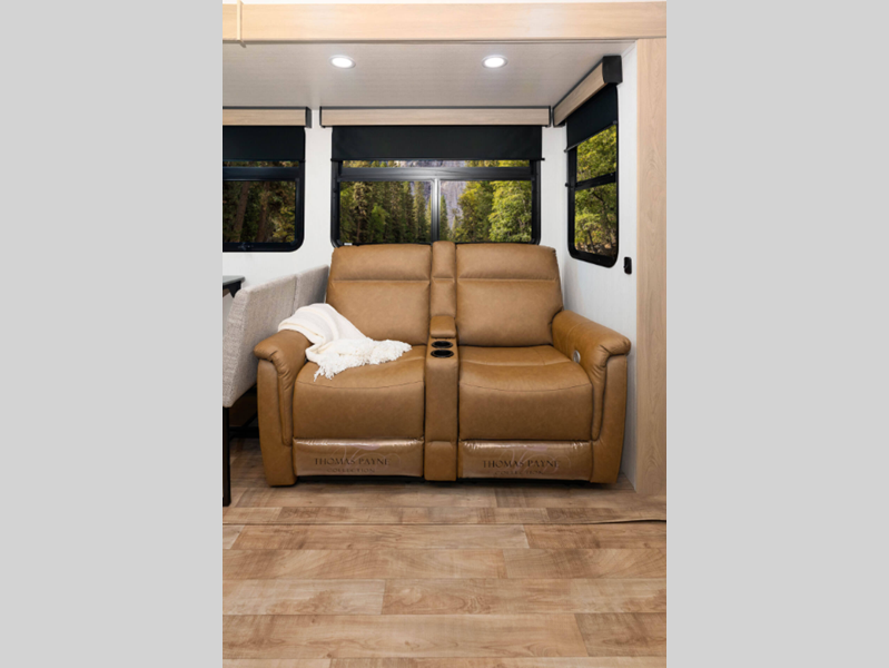 Sleeps 6 Slides 3 Length 39 ft 2 in Ext Width 8 ft Ext Height 12 ft 11 in Interior Color Mink Hitch Weight 2140 lbs GVWR 13595 lbs Dry Weight 11030 lbs Cargo Capacity 2565 lbs Fresh Water Capacity 76 gals Grey Water Capacity 90 gals Black Water Capacity 50 gals Tire Size 16" Furnace BTU 35000 btu Number Of Bunks 2 Available Beds King Refrigerator Type French Door 12V Refrigerator Size 10 cu ft Cooktop Burners 3 Shower Size 42" x 30" Number of Awnings 2 Axle Weight 8890 lbs LP Tank Capacity 30 lbs Water Heater Type On Demand Tankless AC BTU 27000 btu TV Info LR 43" Smart LED TV Awning Info 10' 6" and 16' Power w/LED Light Strip Axle Count 2 Washer/Dryer Available Yes Number of LP Tanks 2 Shower Type Shower w/Seat Electrical Service 50 amp Similar Floorplans
